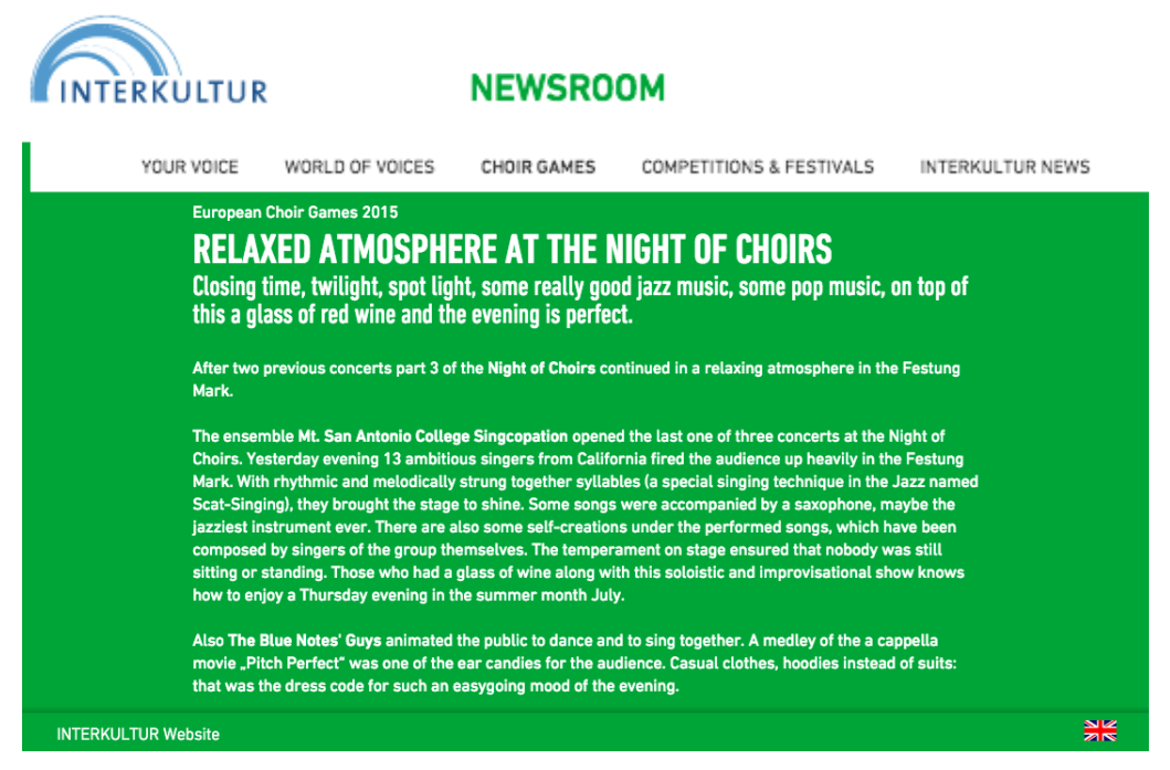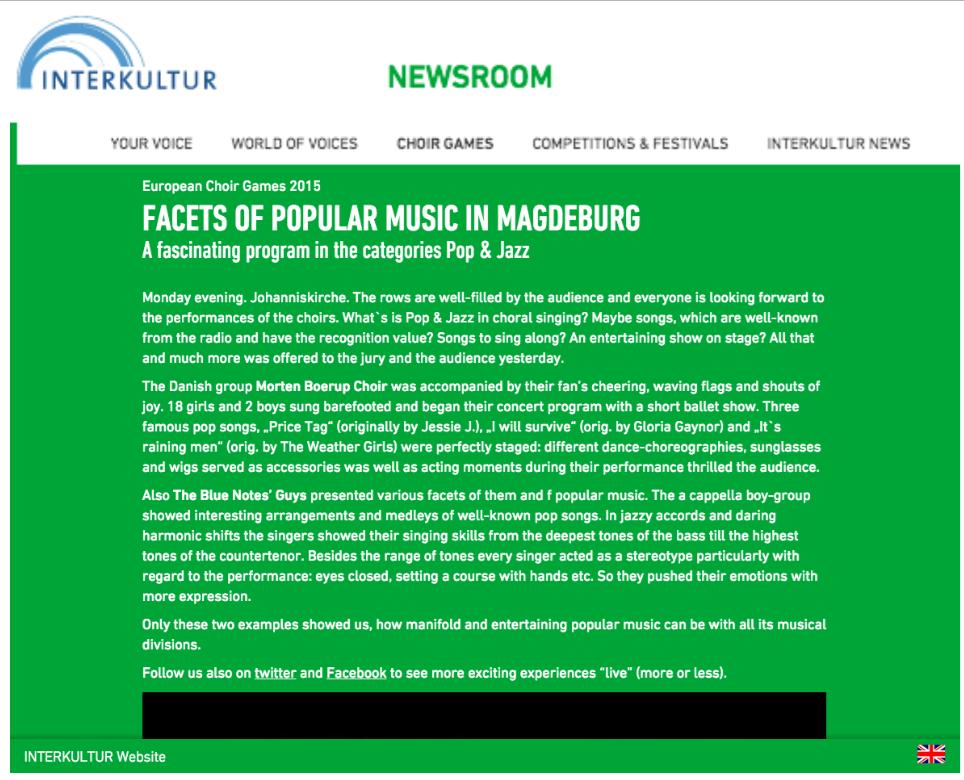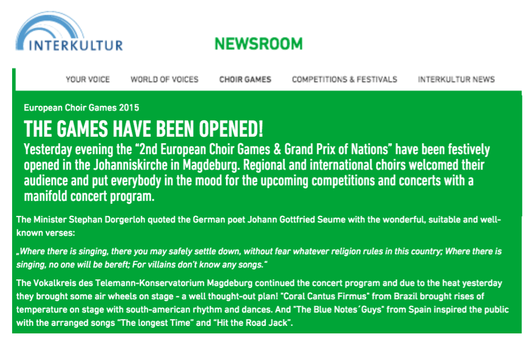 Press http://www.operaworld.es/el-minuto-de-oro-de-kktv-de-lothar-siemens-en-las-palmas-de-gran-canaria/ Salvajes canarios, mestizos y comprometidos http://www.masteatro.com/ensemble-salvaje/ http://news.interkultur.com/newsroom/choir-games/details/news/detail/News/facets-of-popular-music-in-magdeburg/ http://news.interkultur.com/newsroom/choir-games/details/news/detail/News/the-games-have-been-opened/ http://news.interkultur.com/newsroom/choir-games/details/news/detail/News/relaxed-atmosphere-at-the-night-of-choirs/ http://news.interkultur.com/newsroom/choir-games/details/news/detail/News/how-a-friendship-concert-turns-into-a-choir-party/ Comparte esto: Compartir en X (Se abre en una ventana nueva) X Compartir en Facebook (Se abre en una ventana nueva) Facebook Me gusta Cargando...